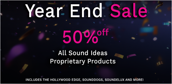 During our Year End Sale, enjoy 50% off all Sound Ideas proprietary libraries. Browse through our collection and get all the sounds and royalty free music you need!